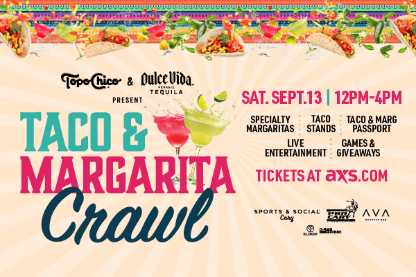 No time to siesta, we’re throwing a fiesta! Shake things up with specialty margaritas and tacos at this year’s Taco & Margarita Crawl, presented by Dulce Vida Tequila & Topo Chico Hard Seltzer, happening on Saturday, September 13 at 12pm!